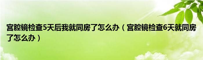 大家好,linda来为大家解答以上的问题。宫腔镜检查5天后我就同房了怎么办,宫腔镜检查6天就同房了怎么办很多人还不知道,现在让我们一起来看看吧!