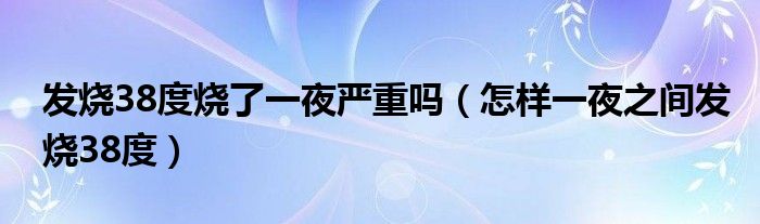 大家好,linda来为大家解答以上的问题。发烧38度烧了一夜严重吗,怎样一夜之间发烧38度很多人还不知道,现在让我们一起来看看吧!