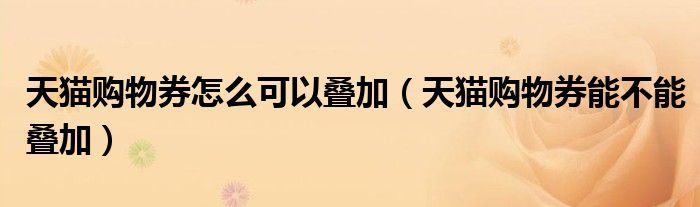 大家好,跳跳为你解答以上问题。天猫购物券怎么可以叠加,天猫购物券能不能叠加这个问题很多人还不知道,现在让我们一起来看看吧!