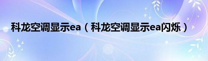 大家好,小叶为你解答以上问题。科龙空调显示ea,科龙空调显示ea闪烁这个问题很多人还不知道,现在让我们一起来看看吧!