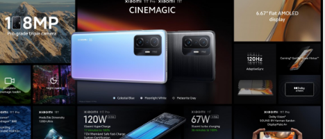 小米11T和11TPro配备108MP摄像头、6.67英寸120HzAMOLED显示屏