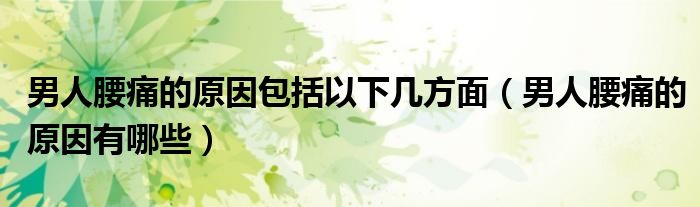大家好,linda来为大家解答以上的问题。男人腰痛的原因包括以下几方面,男人腰痛的原因有哪些很多人还不知道,现在让我们一起来看看吧!