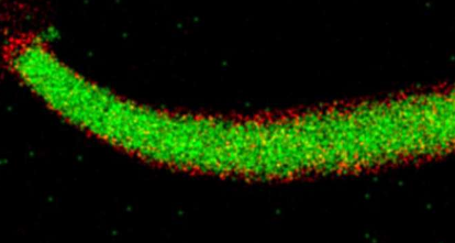 100 次循环后的硅阳极:阳极几乎无法识别为硅结构,而是来自固体电解质中间相的硅(绿色)和氟(红色)的混合物。图片来源:王崇敏 | 太平洋西北国家实验室