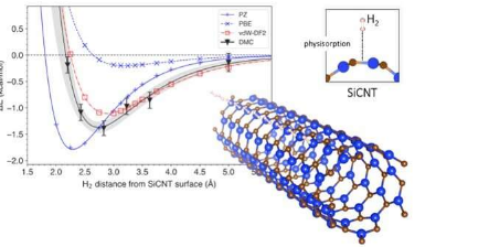 传统的预测方法通常基于称为密度泛函理论(DFT)的计算技术。DFT使用描述电子密度空间变化的泛函(量子相互作用的模型描述)来确定复杂系统的属性。虽然已经有几项基于DFT的研究关于碳化硅纳米管上的氢存储,但没有一项研究将范德华力纳入他们的预测中。然而,范德华修正的DFT泛函已被用于其他材料的预测。Hongo博士和团队使用范围广泛的DFT泛函模拟了储氢,这些泛函具有范德瓦尔斯修正,而那些没有。他们发现,没有范德华修正的DFT泛函将储氢所需的能量误估了4-14%。另一方面,范德瓦尔斯校正的DFT泛函产生的结果与DMC的结果非常相似。此外,他们发现范德华力对存储能量的贡献约为9-29%,这几乎是微不足道的。