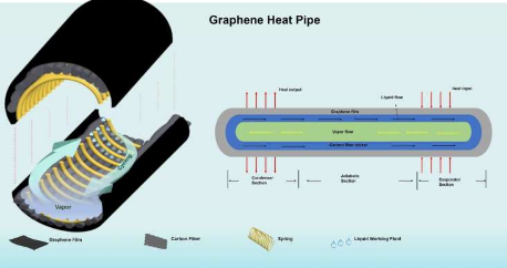 石墨烯增强热管由高导热石墨烯组装薄膜制成,辅以碳纤维柳条增强内表面。研究人员测试了外径为 6 毫米、长度为 150 毫米的管道。它们在冷却各种电子和电力系统方面显示出巨大的优势和潜力,尤其是在需要轻量化和高耐腐蚀性的情况下。