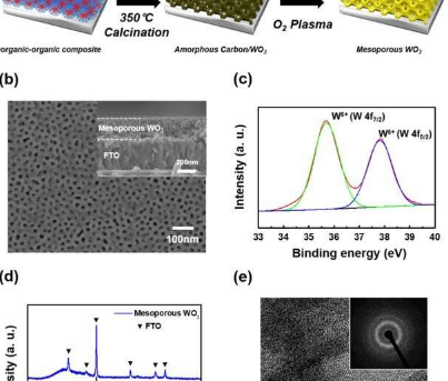 在材料工程中,微孔或孔隙网络可以提高材料的储能能力,用于智能窗户的应用。智能窗户是可以在施加光、电压或热量时改变其透光特性的平台。科学家可以使用电压控制穿过材料的光的比例,从而在电荷转移过程中从透明材料电切换到不透明材料。虽然此功能与能量的储存和释放有关,但相同的材料也可用于能量储存。在一份新报告中,韩国浦项科技大学的 Jeon-Woo Kim 和一组科学家开发并改进了由三氧化钨(WO3)。他们使用蒸发诱导的自组装工艺来沉积带有孔的三氧化钨薄膜,与传统的三氧化钨薄膜相比,多孔结构提高了材料的开关速度和电容。该工作现已发表在Nature Asia Materials 上。