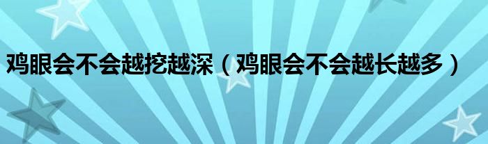 大家好,linda来为大家解答以上的问题。鸡眼会不会越挖越深,鸡眼会不会越长越多很多人还不知道,现在让我们一起来看看吧!