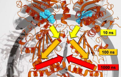 与树木相反,研究中分析的蛋白质Hsp90的运动以对数时间尺度展开。每个大型机芯的耗时大约是构成大型机芯的小巧的独立机芯的十倍。沃尔夫解释说:“例如,一根树枝的移动时间为几秒钟;树枝的移动时间为10秒;树干的移动时间为100秒。” 结合使用最新的实验和理论方法,研究人员可以监视变构通讯,换句话说,可以显示Hsp90中的反应过程如何改变远程蛋白质结合位点。根据Stock的说法,研究小组发现了这种变构过程所依据的动力学层次,包括纳秒级到毫秒级的时标以及从皮克到几纳米的长度标度。