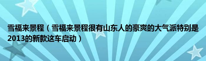 1,雪福来景程很有山东人的豪爽的大气派特别是2013的新款这车启动:车相对重,而且变速箱一般,另外话说回来了,银子和动力不可兼得,差不多行了,同样价钱车之间没那么大区别,自己看着顺眼开着顺手就好