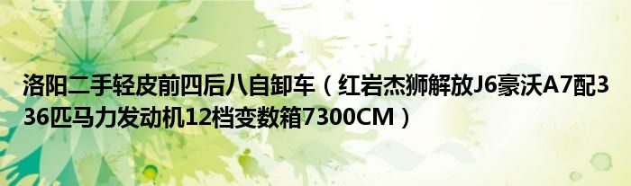大家好,小常来为大家解答以下问题,对于洛阳二手轻皮前四后八自卸车,红岩杰狮解放J6豪沃A7配336匹马力发动机12档变数箱7300CM很多人还不知道,今天让我们一起来看看吧!