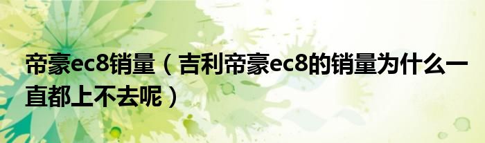 2,吉利帝豪ec8的销量为什么一直都上不去呢: 原因如下。外观和调校不符合这个价位消费者的定位。ec8那个外观,那个调校方向,可以总结为“低端商务车”,但这个价位的消费者其实都是买车家用为主。定位错误,销量就不会高。该车将l搭载2.0L和2.4L排量的发动机,与其匹配的是6AT变速器,该变速器为吉利收购 澳大利亚自动变速器公司DSI所拥有的成熟自动变速器产品。?帝豪EC8的内饰颜色采用了流行的上深下浅的双色内饰风格,上层深色可以有 效吸收光线,防眩目。中控台采用全景式中控台,上部的多媒体中心,除了搭载了DVD-GPS导航系统,其中装载的蓝牙设置可以直接读取存储在手机上的多媒体文件进行播放。