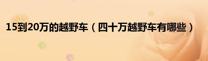 大家好,小常来为大家解答以下问题,对于15到20万的越野车,四十万越野车有哪些很多人还不知道,今天让我们一起来看看吧!