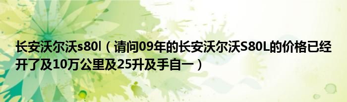 1,请问09年的长安沃尔沃S80L的价格已经开了 10万公里 25升 手自一:展开全部您好!山东市场上2009年长安沃尔沃S80L09款 2.5T 智尊版 手自一体挡 市场价格在-1.00万左右二手长安沃尔沃S80L相关信息:http://www.ucar.cn/buycar/serial/changanwoerwos80l/