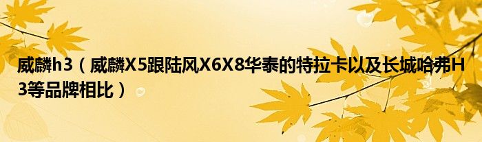 大家好,小常来为大家解答以下问题,对于威麟h3,威麟X5跟陆风X6X8华泰的特拉卡以及长城哈弗H3等品牌相比很多人还不知道,今天让我们一起来看看吧!