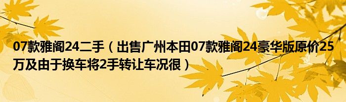 1,出售广州本田07款雅阁24豪华版原价25万 由于换车将2手转让车况很:13w~16w吧