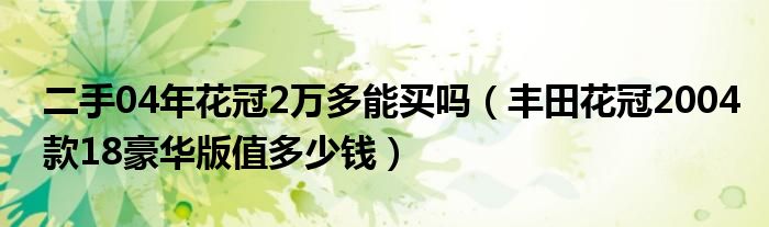 大家好,小常来为大家解答以下问题,对于二手04年花冠2万多能买吗,丰田花冠2004款18豪华版值多少钱很多人还不知道,今天让我们一起来看看吧!