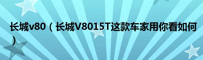 大家好,小常来为大家解答以下问题,对于长城v80,长城V8015T这款车家用你看如何很多人还不知道,今天让我们一起来看看吧!
