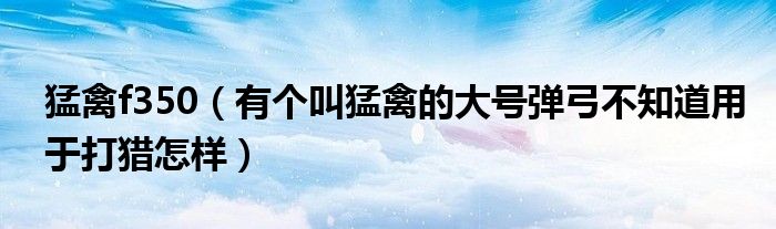 最佳答案大家好,小常来为大家解答以下问题,对于猛禽f350,有个叫猛禽的大号弹弓不知道用于打猎怎样很多人还不知道,今天让我们一起来看看吧!1,有个叫猛禽的大号弹弓不知道用于打猎怎样:猛禽其实就是忽悠人的,真正的复合弓爱好者不会用几千买那玩意的,还不如考虑玩玩复合gongnu,价位合适,性价比高,...