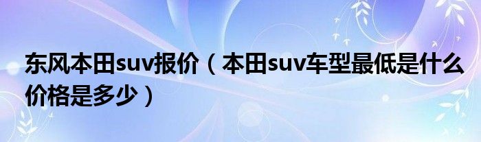 大家好,小常来为大家解答以下问题,对于东风本田suv报价,本田suv车型最低是什么价格是多少很多人还不知道,今天让我们一起来看看吧!