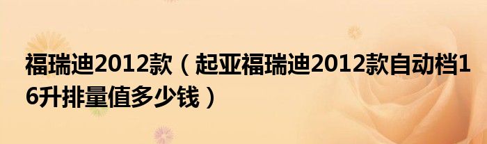 6,2012款福瑞迪多少钱 :2011款 福瑞迪 1.6L GL MT 手动 。 7.95万-10.28万 询价>> +对比 2011款 福瑞迪 1.6L GLS MT 手动 。8.85万-11.88万 询价>> +对比 2011款 福瑞迪 1.6L GL AT 手自一体。 8.75万-11.28万 询价>> +对比 2011款 福瑞迪 1.6L GLS AT 手自一体 。 9.64万-11.98万 询价>> +对比 2011款 福瑞迪 1.6L Premium AT 手自一体 。 9.84万-12.98万 询价>> 供参考,4S店的实际价格比中间价会低点。