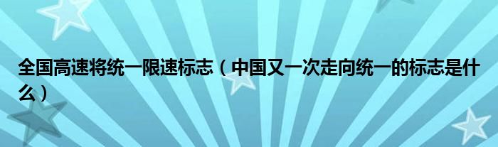 大家好,小常来为大家解答以下问题,对于全国高速将统一限速标志,中国又一次走向统一的标志是什么很多人还不知道,今天让我们一起来看看吧!