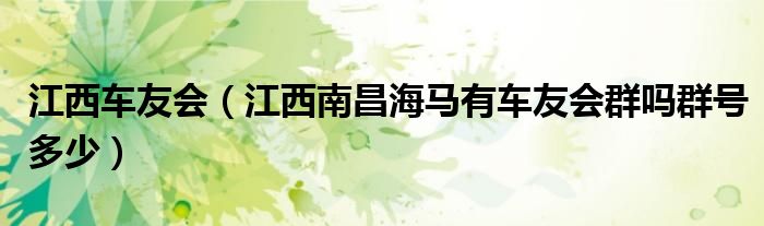 大家好,小常来为大家解答以下问题,对于江西车友会,江西南昌海马有车友会群吗群号多少很多人还不知道,今天让我们一起来看看吧!