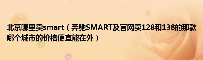 大家好,小常来为大家解答以下问题,对于北京哪里卖smart,奔驰SMART及官网卖128和138的那款哪个城市的价格便宜能在外很多人还不知道,今天让我们一起来看看吧!