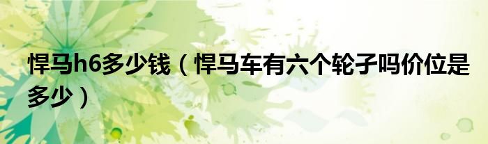 1,悍马车有六个轮孑吗价位是多少 :悍马车有六个轮子的车型,那个应该是加长型的悍马H6车型,价格方面也从悍马H2原来的一百一十多万直上至两百多万元的价格。