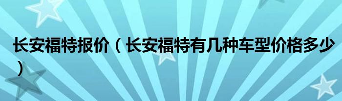 1,长安福特有几种车型价格多少 :据我所知目前长安福特有以下几款车型:福特新嘉年华两厢和三厢车型 福特福克斯两厢和三厢 福特蒙迪欧致胜 福特S-MAX,另外还有一款福特翼虎是以长安福特的名义原装进口的