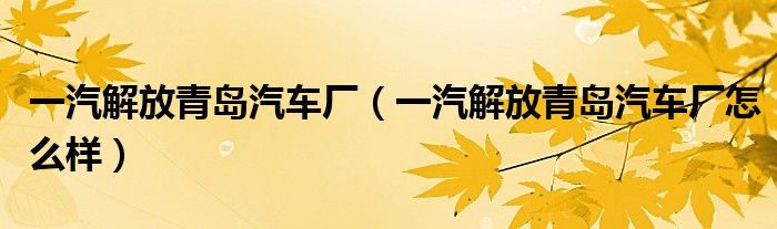 大家好,小常来为大家解答以下问题,对于一汽解放青岛汽车厂,一汽解放青岛汽车厂怎么样很多人还不知道,今天让我们一起来看看吧!
