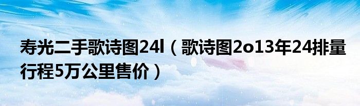 大家好,小常来为大家解答以下问题,对于寿光二手歌诗图24l,歌诗图2o13年24排量行程5万公里售价很多人还不知道,今天让我们一起来看看吧!