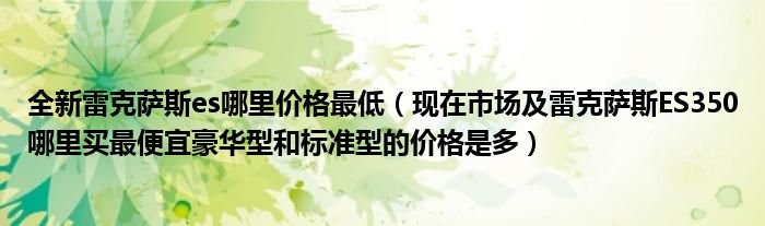 大家好,小常来为大家解答以下问题,对于全新雷克萨斯es哪里价格最低,现在市场及雷克萨斯ES350哪里买最便宜豪华型和标准型的价格是多很多人还不知道,今天让我们一起来看看吧!