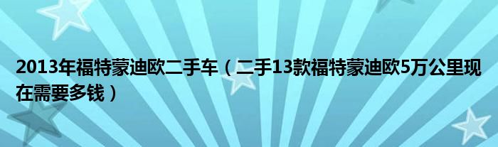 1,二手13款福特蒙迪欧5万公里现在需要多钱 :二手13款福特蒙迪欧行驶5万公里现在车子的车况还有手续方面不存在明显问题,一般大体在10-12万之间,具体需要看车子实际车况还有配置状况。