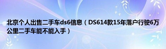大家好,小常来为大家解答以下问题,对于北京个人出售二手车ds6信息,DS614款15年落户行驶6万公里二手车能不能入手很多人还不知道,今天让我们一起来看看吧!