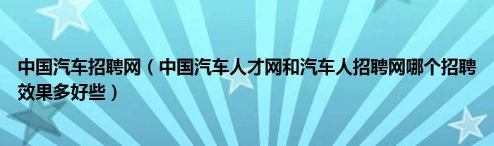 1,中国汽车人才网和汽车人招聘网哪个招聘效果多好些:中国汽车人才网偏向于汽车成车厂,汽车销售和售后领域不行,汽车人招聘则强在4S店和汽车售后领域,其实你看一下上面投放的广告和发布招聘的企业类型比例就清楚了