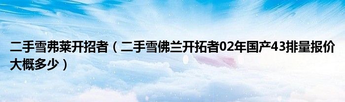 大家好,小常来为大家解答以下问题,对于二手雪弗莱开招者,二手雪佛兰开拓者02年国产43排量报价大概多少很多人还不知道,今天让我们一起来看看吧!