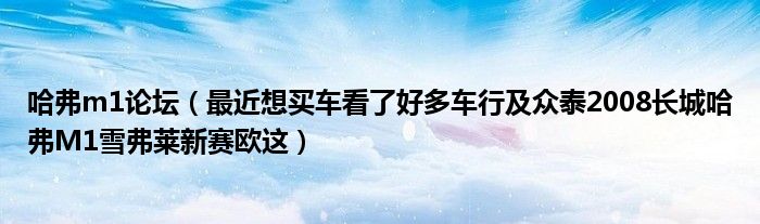 大家好,小常来为大家解答以下问题,对于哈弗m1论坛,最近想买车看了好多车行及众泰2008长城哈弗M1雪弗莱新赛欧这很多人还不知道,今天让我们一起来看看吧!