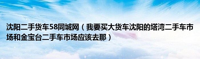 大家好,小常来为大家解答以下问题,对于沈阳二手货车58同城网,我要买大货车沈阳的塔湾二手车市场和金宝台二手车市场应该去那很多人还不知道,今天让我们一起来看看吧!