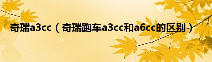 大家好,小常来为大家解答以下问题,对于奇瑞a3cc,奇瑞跑车a3cc和a6cc的区别很多人还不知道,今天让我们一起来看看吧!
