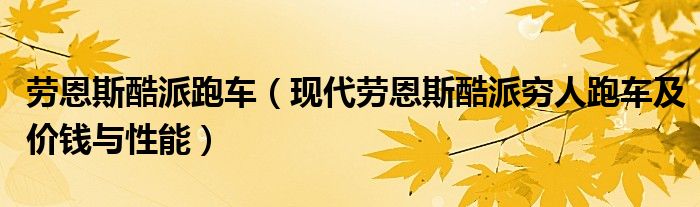 大家好,小常来为大家解答以下问题,对于劳恩斯酷派跑车,现代劳恩斯酷派穷人跑车及价钱与性能很多人还不知道,今天让我们一起来看看吧!