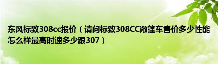 大家好,小常来为大家解答以下问题,对于东风标致308cc报价,请问标致308CC敞篷车售价多少性能怎么样最高时速多少跟307很多人还不知道,今天让我们一起来看看吧!