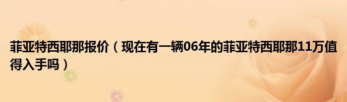 1,现在有一辆06年的菲亚特西耶那11万值得入手吗 :06年的菲亚特西耶那,1.1万价格看似便宜,不过个人认为还是不值得入手,因为这款车停产快十年,保有量不大,维修保养和保值性方面都是问题。