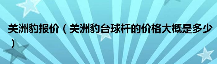 大家好,小常来为大家解答以下问题,对于美洲豹报价,美洲豹台球杆的价格大概是多少很多人还不知道,今天让我们一起来看看吧!