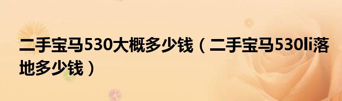 大家好,阳阳来为大家讲解下。二手宝马530大概多少钱,二手宝马530li落地多少钱很多人还不知道,现在让我们一起来看看吧!
