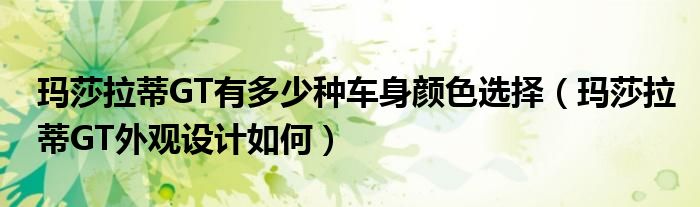 大家好,阳阳来为大家讲解下。玛莎拉蒂GT有多少种车身颜色选择,玛莎拉蒂GT外观设计如何很多人还不知道,现在让我们一起来看看吧!