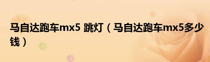 大家好,阳阳来为大家讲解下。马自达跑车mx5 跳灯,马自达跑车mx5多少钱很多人还不知道,现在让我们一起来看看吧!