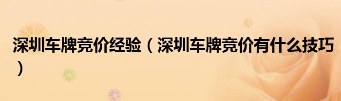 深圳车牌竞价经验(深圳车牌竞价有什么技巧)