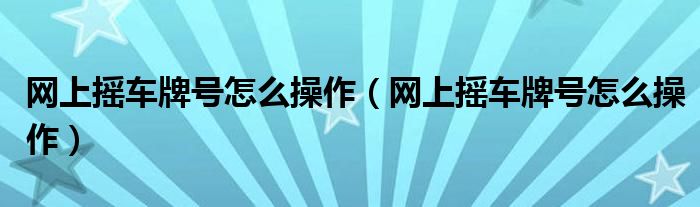 大家好,阳阳来为大家讲解下。网上摇车牌号怎么操作,网上摇车牌号怎么操作很多人还不知道,现在让我们一起来看看吧!