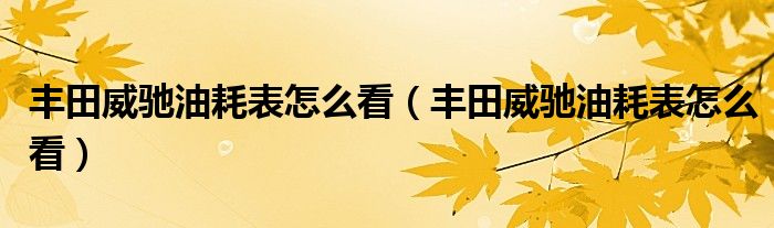 丰田威驰油耗表怎么看(丰田威驰油耗表怎么看)