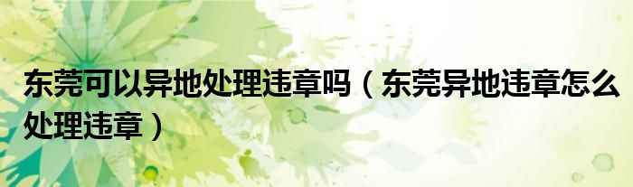 大家好,阳阳来为大家讲解下。东莞可以异地处理违章吗,东莞异地违章怎么处理违章很多人还不知道,现在让我们一起来看看吧!